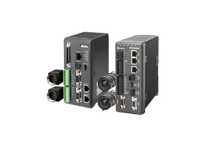 台达机器视觉系统DMV系列,针对自动化生产线的需求,提供产品质量的瑕疵检测、外观尺寸量测、工件计数、识别确认、以及自动化对位组装等多项视觉检测功能与需求。使用者可透过DMV图像处理控制器内部多任务运算处理能力,搭配人性化的操作界面以及多样化的机器视觉检测功能进行作业。DMV系列的检测功能包含:「面积检测」、「边缘位置、距离、计数、角度」、「瑕疵及斑点检测」、「图形比对、轮廓比对」、「字符辨识」、「坐标、角度运算」、「寻边量测」、以及「自动对位、坐标搜寻」等多项功能,有效解决产在线因操作人员疲劳或疏忽所造成的误判,或是检测出人眼无法辨识的产品缺陷,以及精准组装高精密产品组装等问题,全面提升产品质量、降低客退件数、增加设备产能以及减少人力成本。